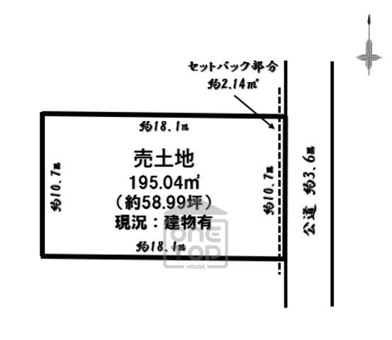 | 備考 | ■どなでも建築・再建築できる土地です。■確定測量済みです。(実測面積:195.26㎡ 約59.06坪)■解体更地渡し。 | ||