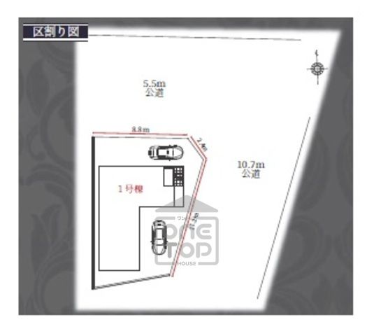 | 土地面積基準 | 公簿 | 接道 | 公道 北 幅員9.4m 公道 東 幅員10.7m |